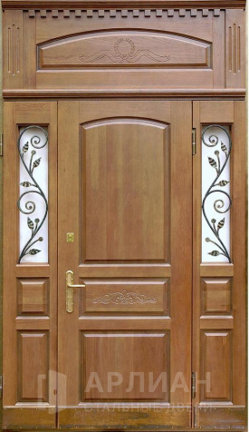 Входная арочная дверь с витражом и решеткой №419