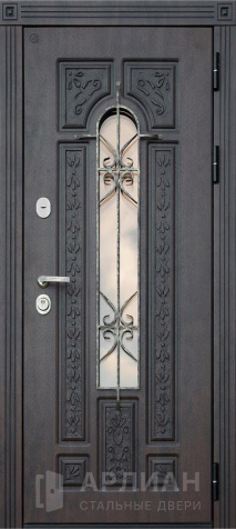 Железная входная дверь в частный дом со стеклом отделка №21