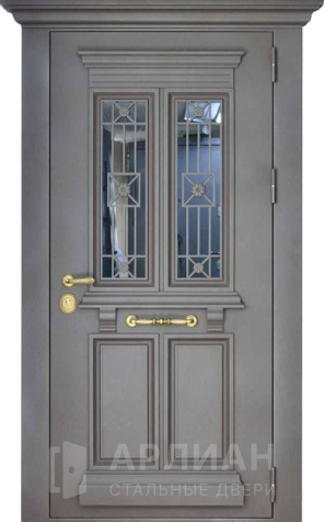 Металлическая входная дверь в коттедж с верхней фрамугой №10